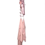Cover con corpiño visto, escote a la caja y maxi-mangas abullonadas, todo en mikado nude. Falda a tiras en mikado nude con falda tipo cascada en gasa nude y cierre en la cintura, hecho a medida.